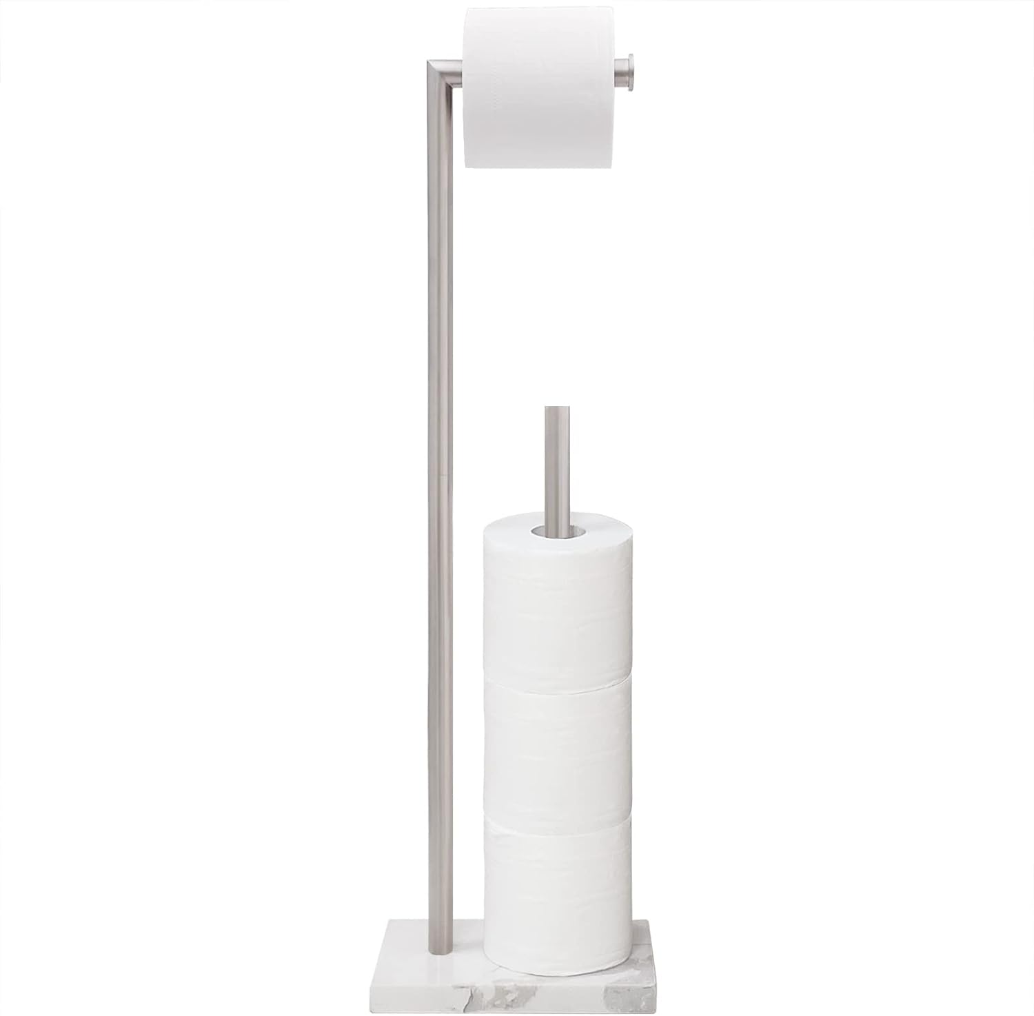 Free Standing Toilet Paper Holder Stand with Reserve, Heavy Weighted Marble Base Design, Bathroom Stands Tissue Rolls Holder, 304 Stainless Steel Brushed Nickel