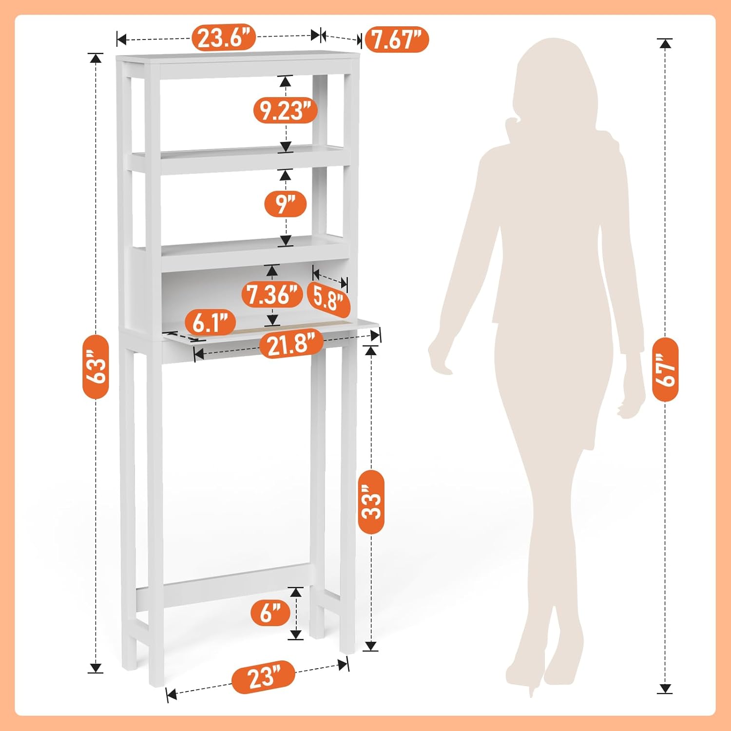 Over The Toilet Storage Cabinet, 3-Tier Bathroom Organizer with Rattan Door, Wooden Space Saver for Restroom, Bathroom, Laundry