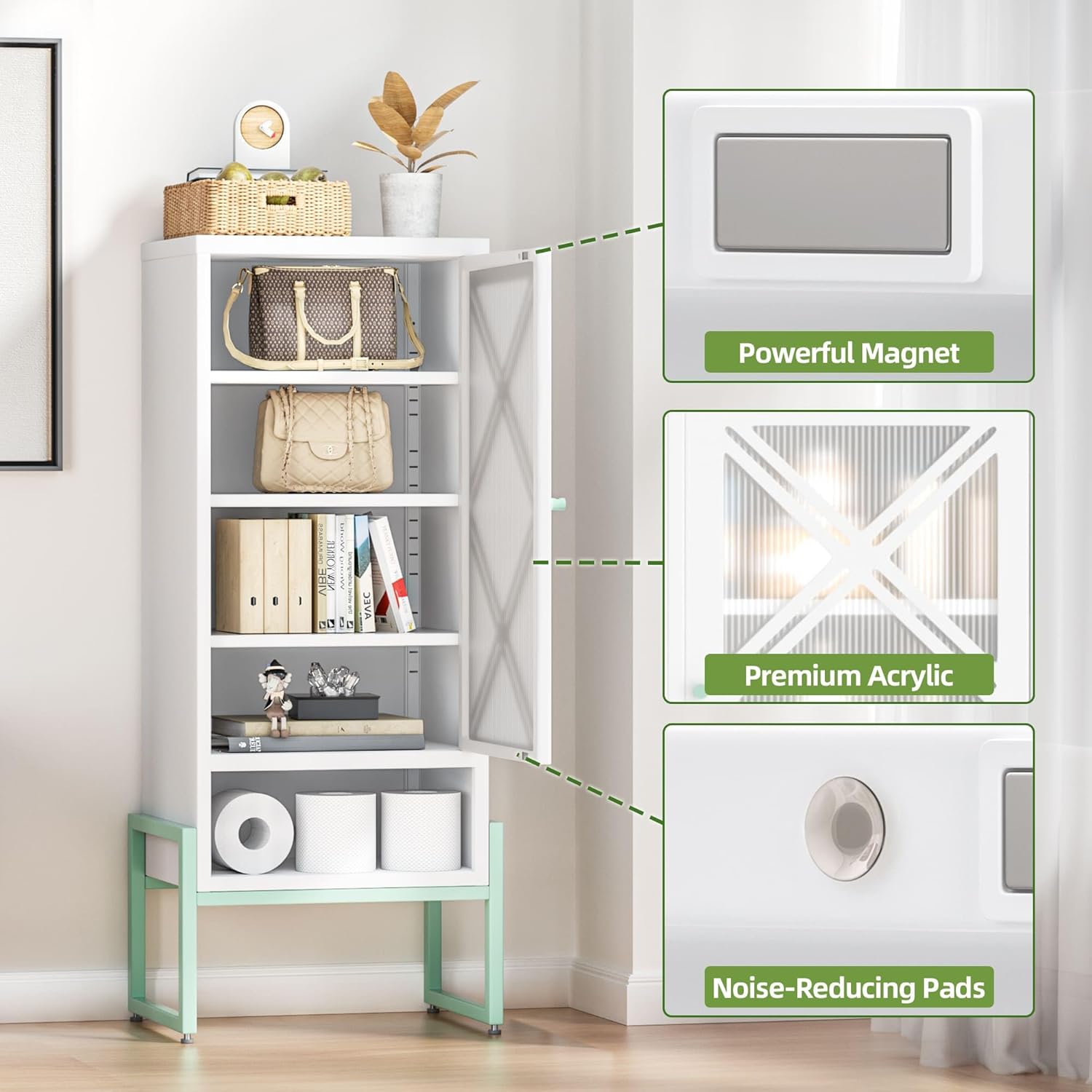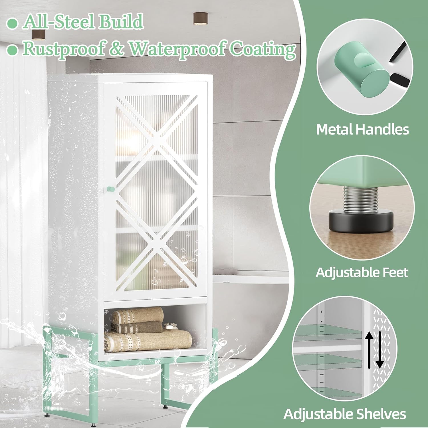 Small Bathroom Storage Cabinet with Doors and Adjustable Shelves, 42.51" H Metal Floor Cabinet for Bathroom, Laundry Room, and More - Rustproof & Waterproof
