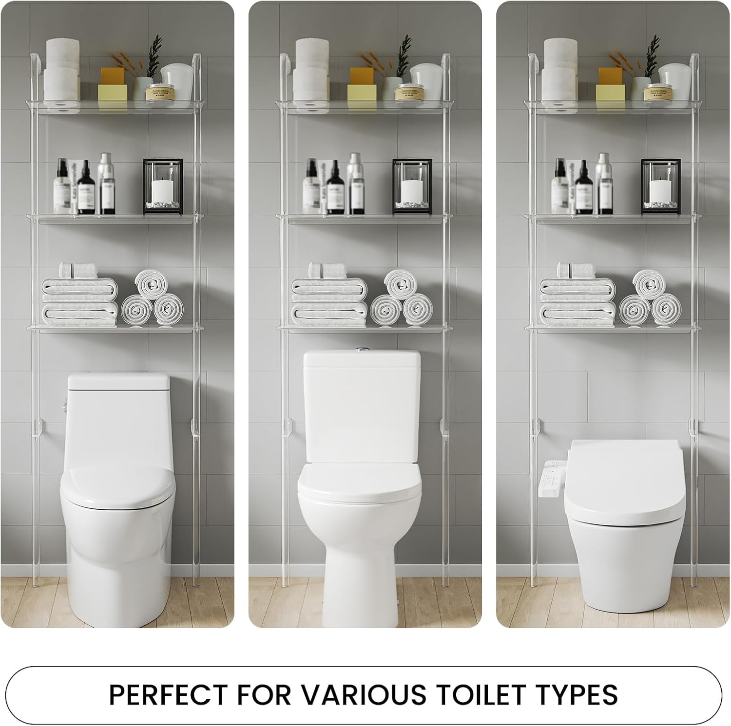 Sumerflos Acrylic Over The Toilet Storage Shelf - 3 Tier Clear Over-The-Toilet Bathroom Organizer Rack Above Toilet Shelves Standing for Bathroom Living Room Bedroom Modern