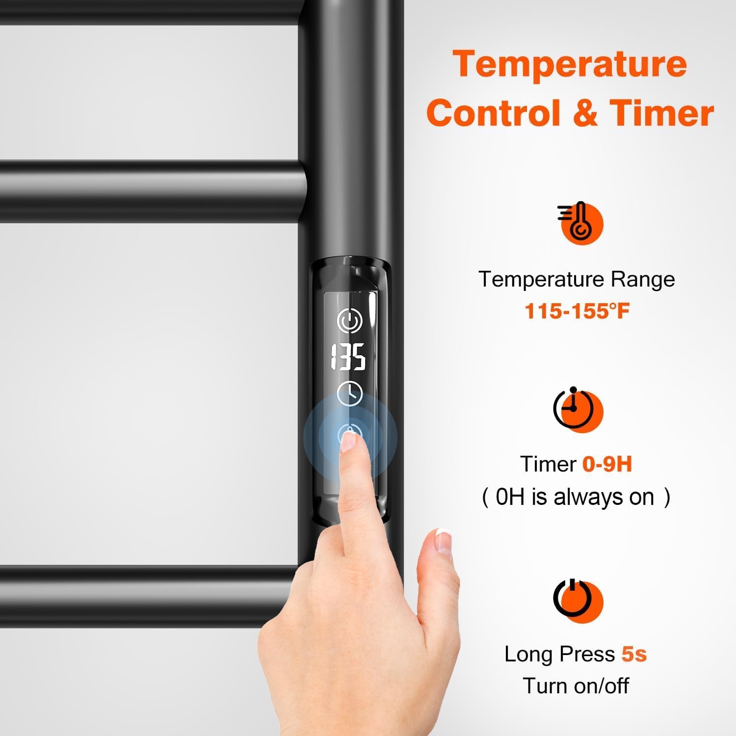 Towel Warmer, Towel Heater Rack for Bathroom,16 Bars Electric Towel Dryer Wall-Mounted Plug-in Bath Heater, Stainless Steel Hot Towel Rack with Timer and Smart Temperature Control- Black
